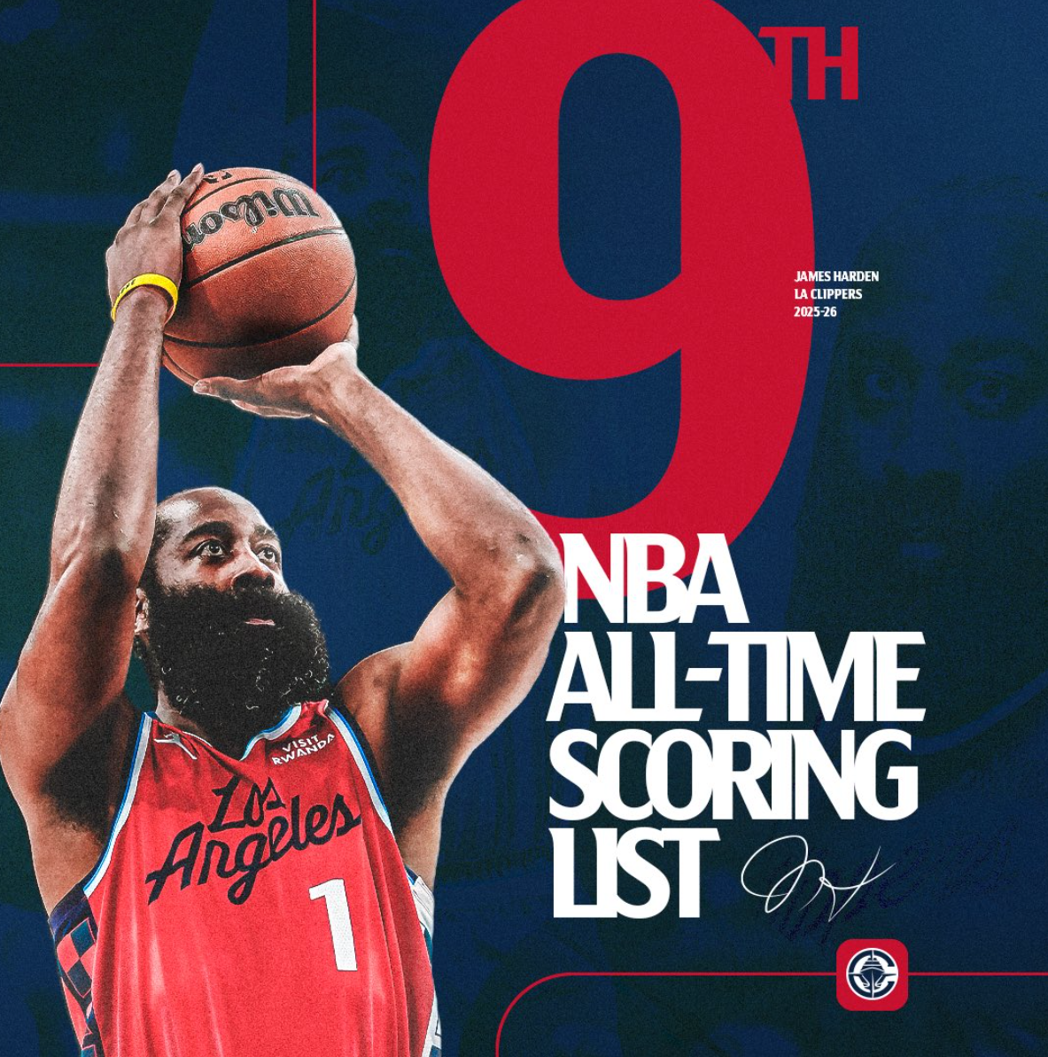 北京时间1月13日,NBA常规赛,快船击败黄蜂拿到三连胜。此役是哈登的里程碑夜晚,他的总得分超越奥尼尔升至历史第九位,现役他仅次于詹姆斯、杜兰特。这场比赛哈登的手感其实还是不佳,但产量够而且串联了全队,全场比赛32+10+4+4断。
