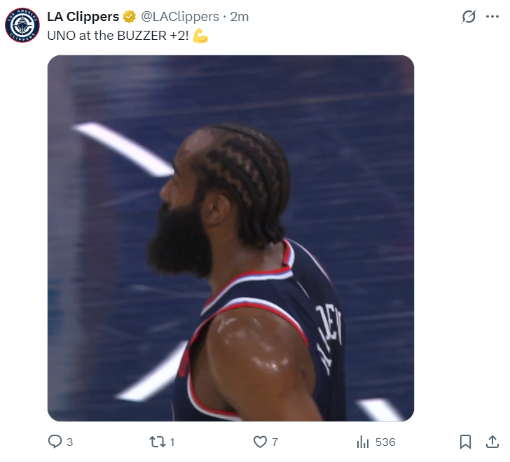 哈登上一场的手感很差20中4+三分7中1,但他命中了关键时刻的反超2+1,此役面对防守能力孱弱的黄蜂,哈登的手感依旧稀烂,三分线外三中0,拿到9分3篮板3助攻,他帮助快船紧咬分差。