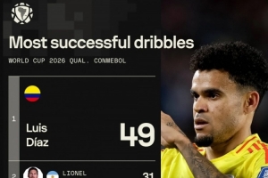 体育资讯9月11日讯 南美世预赛战罢,Sofascore统计了球员在本届世预赛中的成功过人次数,并列出榜单,迪亚斯49次居首,梅西31次第二。